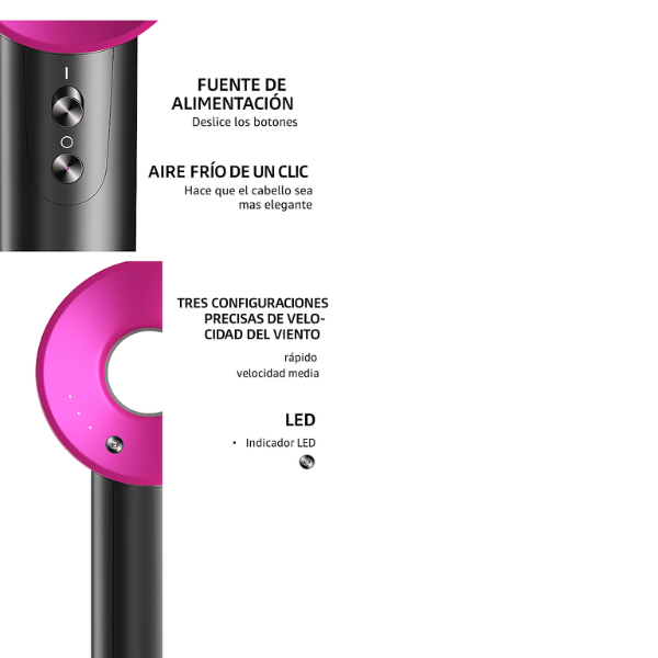 ¡Este secador de pelo es genial! Tiene mucha fuerza y no daña el cabello. Los iones negativos realmente hacen que el cabello se sienta más suave. ¡Es el mejor producto calidad precio!